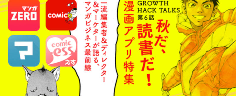 2017年9月14日に渋谷で「Growth Hack Talks #6 秋だ、読書だ! 漫画アプリ特集」が開催されたので話を聞きにいってきました。イベントでは下記の4名が登壇し、それぞれのサービスのグロースハック(成長要因)について語ってくれました。